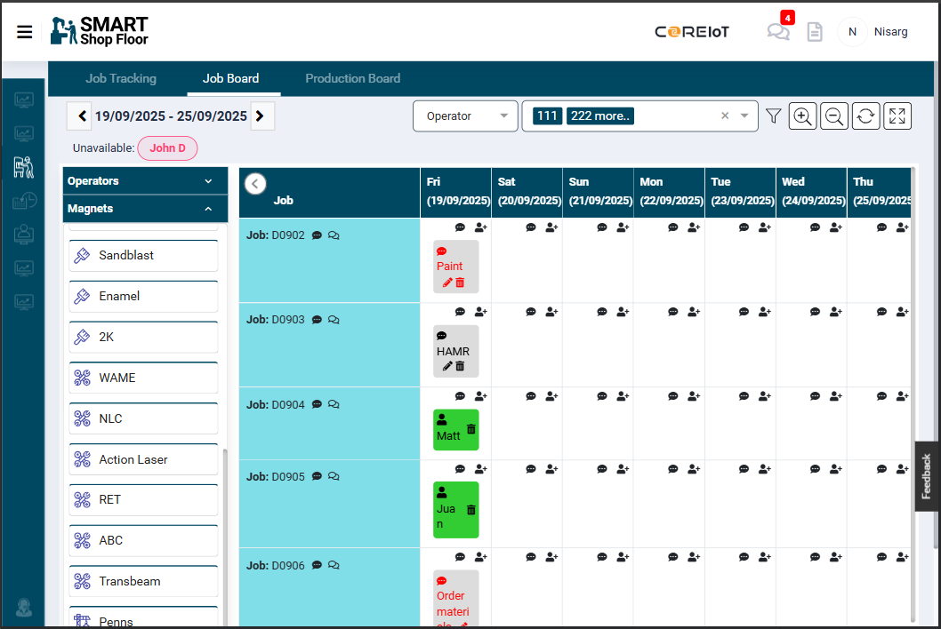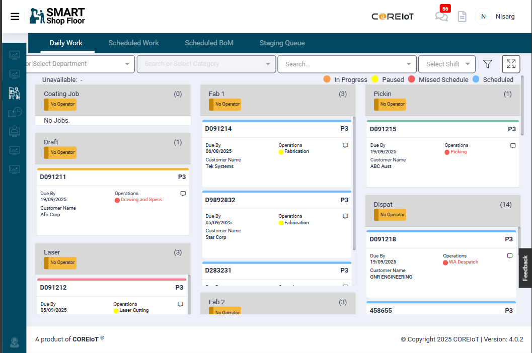 - Jobs are prioritised by customer priority and due dates, so critical work gets done first