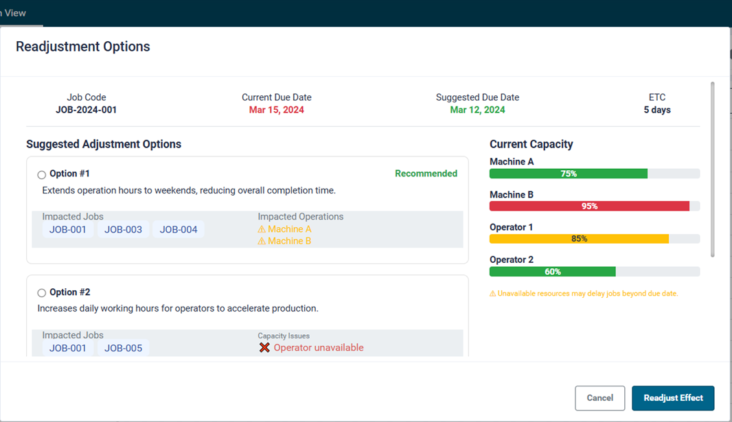 - Confirms operator availability, machine capacity, and materials before releasing jobs to the floor